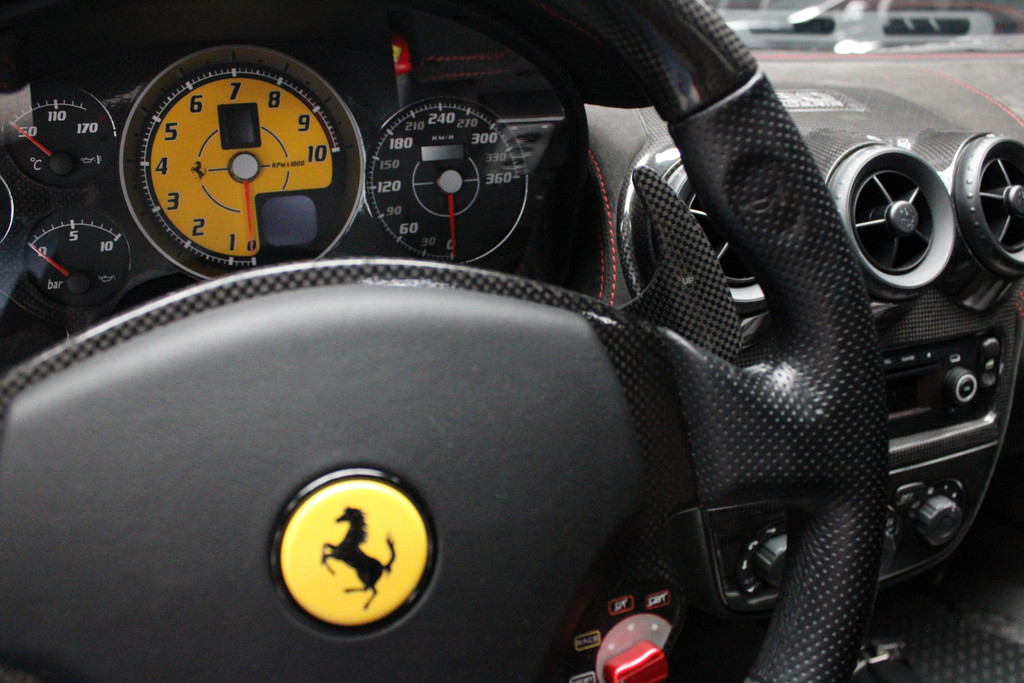 Met de ingebouwde airconditioning zit u altijd ontspannen achter het stuur. De uitrusting van deze Ferrari is met navigatiesysteem en centrale deurvergrendeling met afstandsbediening behoorlijk compleet.