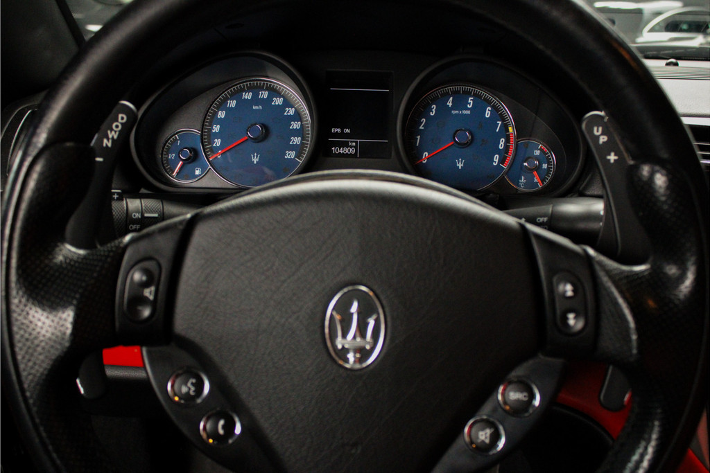 Klassiek, pop, hip-hop of gesproken woord: het Bose audiosysteem levert de volmaakte geluidsweergave. Met de electronic climate control selecteert u de gewenste temperatuur. Het systeem doet de rest. Geen parkeervak is te klein dankzij de assistentie van de parkeersensoren. Om de veiligheid onderweg te verhogen, heeft deze Maserati zowel een automatisch inschakelbare verlichting als een regensensor aan boord, zodat hij zelf de verlichting en de ruitenwissers kan inschakelen. Ook op de korte stukken is de cruise control een uitkomst. Kijk maar bij de benzinepomp! En deze auto heeft ook Bose-audioinstallatie, navigatiesysteem met cd-wisselaar, sportstuur met schakelpaddels, automatisch dimmende buitenspiegels, centrale deurvergrendeling met afstandsbediening en boordcomputer als standaard uitrusting.